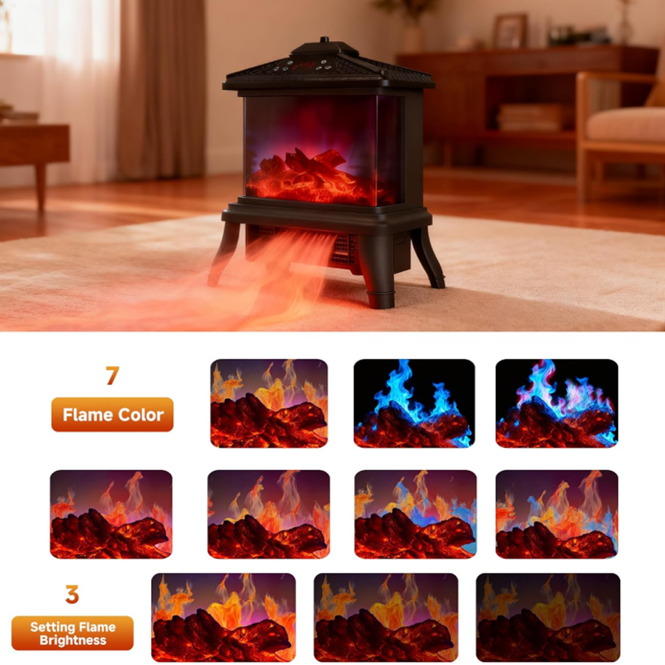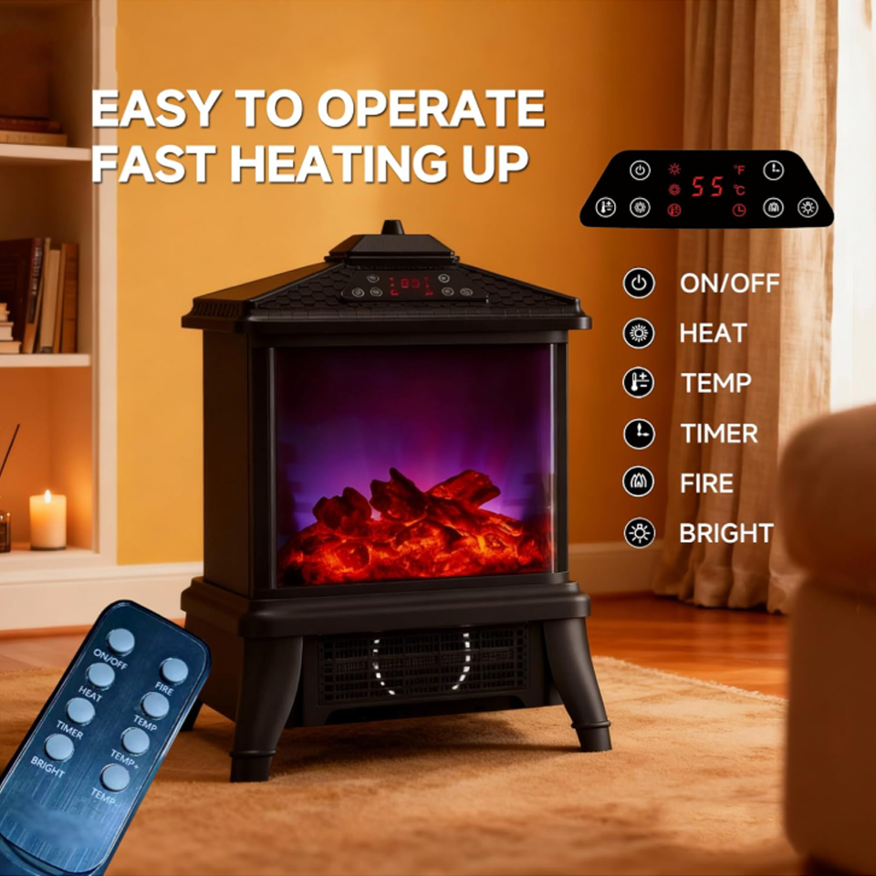 & Free Shipping18-inch Freestanding Electric Fireplace, Equipped with 1500W/1650W Electric Wood Fireplace Flame Effect, Featuring Realistic Flames, 3-Second Quick Heating, Remote Control, and Adjustable Lighting
