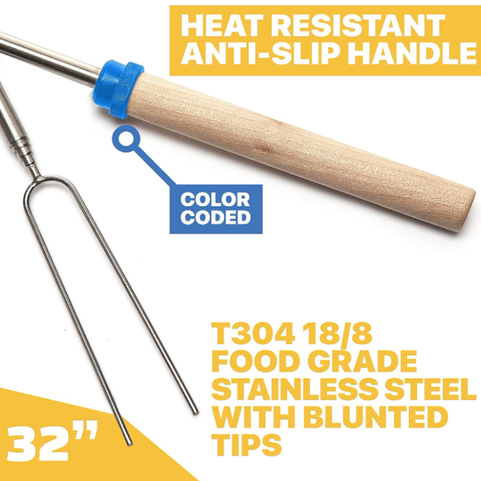 - SAFE FOR KIDS – Keep your children a safe 32 inches away from any fire while they enjoy a fun time with family. Plus, no more fighting! Multi-colored handle tips make identification easy – No more fighting about which stick belongs to who!