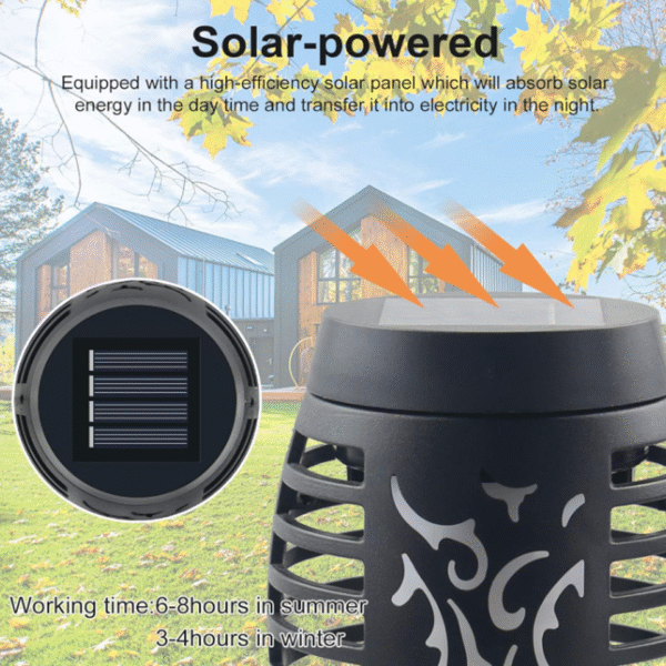 - Easy to Use: No wires needed, simply connect the stake and install them into the ground, no need to spend too much time on installation. It is solar-powered, please install it at the place where can get direct sunlight